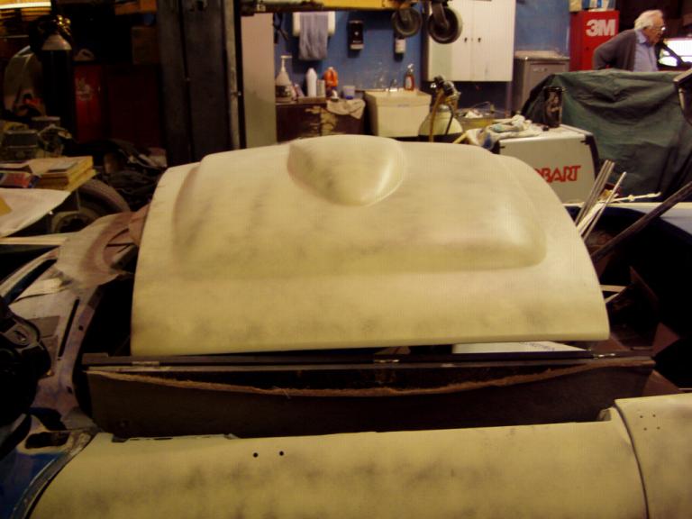 front. Here's my custom fiberglass MGC hood after we've started